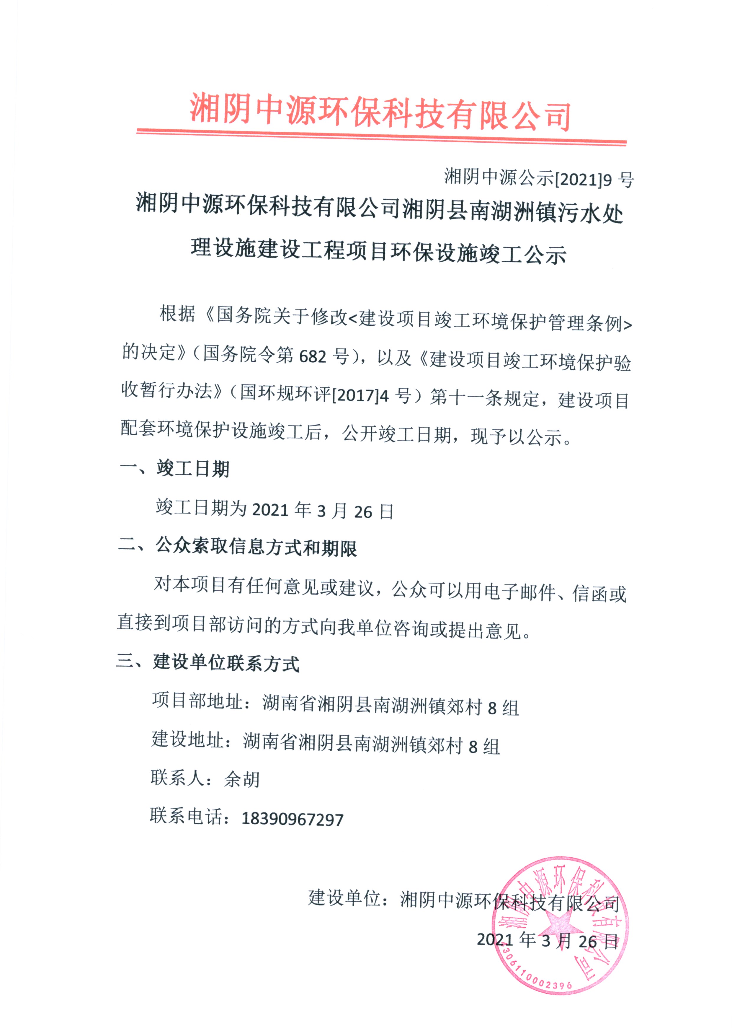 湘陰縣南湖洲鎮(zhèn)污水處理工程項(xiàng)目配套環(huán)保設(shè)施竣工聲明報(bào)告.jpg